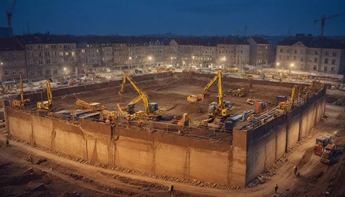 • Wyzwania: wysoka woda gruntowa, niejednorodne nasypy, wibracje w zwartej zabudowie.